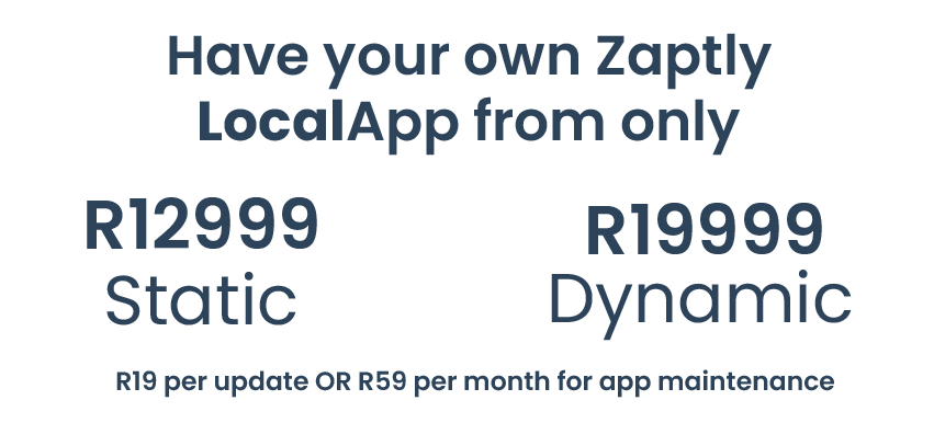 Zaptly Local Apps can transform the way your business retains it’s customers, whether it’s a restaurant, takeaway, hair salon or dog groomers, a Local App means your customers are only a tap away! Save on printing costs and increase customer retention with a Local App You will also be searchable on ‘The Local App Store’.